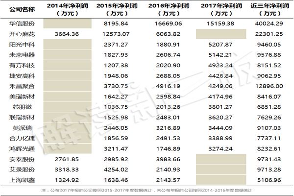 开心麻花2016年净利润6064万元、近三年净利润合计2.23亿元,华信股份2017年扣非净利润达到1.5亿、近三年净利润合计超过4亿,前者原计划申请在创业板上市,后者拟登陆沪市主板。
