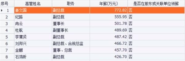 下图是国金证券董监高2017年年薪明细。副总裁姜文国先生以772.82万元位居首位,比第二名同是副总裁的纪路先生高了200多万。董事长冉云先生只位列第三,年薪为501.78万元。