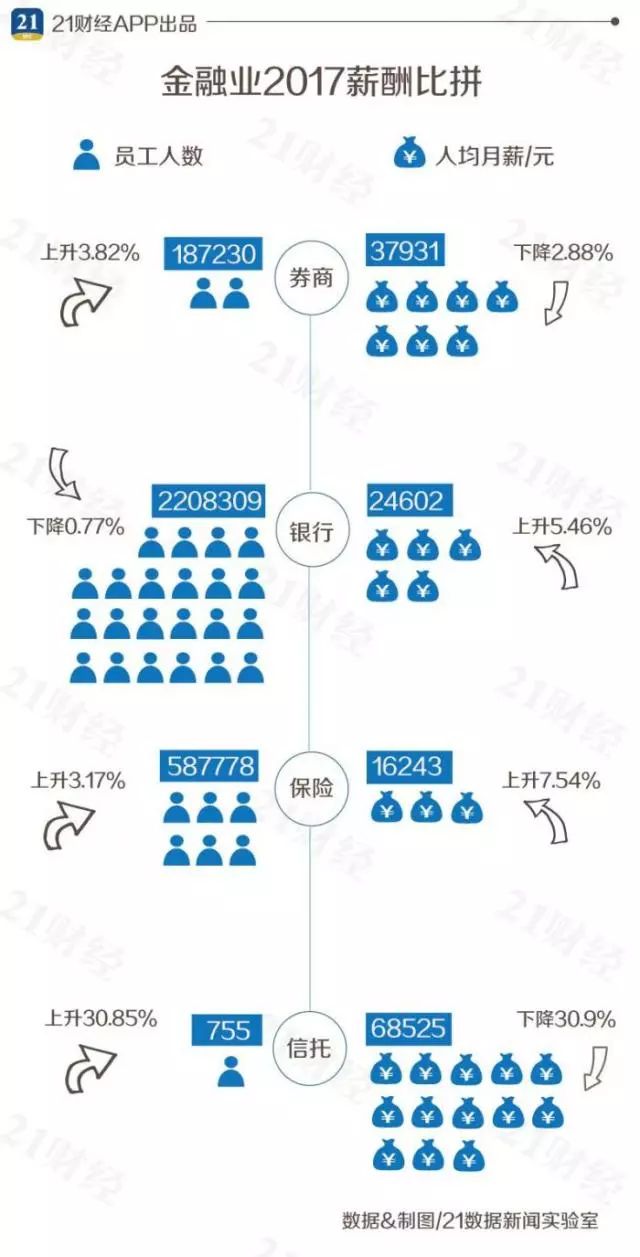 券商人均月薪高,银行普遍加薪
