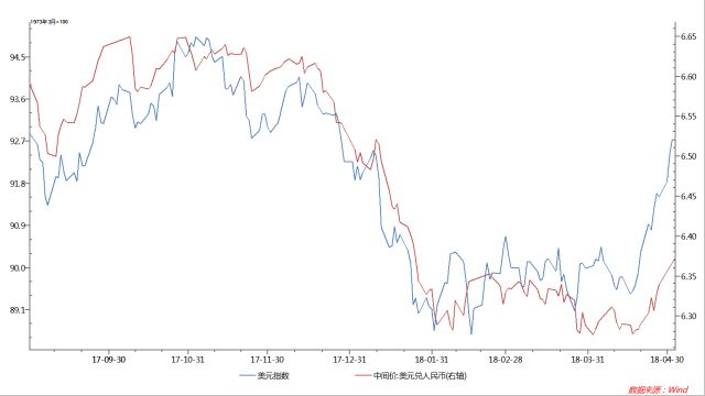 从历史走势上看,美元兑人民币汇率与美元指数二者走势高度相关。随着美元指数脱离3年多的低位,人民币对美元的下行压力在加大。