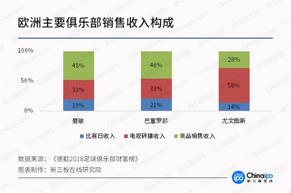 相比于欧洲豪门俱乐部成熟的商业运作模式以及多样化的收入来源,中超俱乐部在运营上显然还有很长的路要走。以五大联赛为例,球队的主要收入来源为比赛日门票收入、电视转播收入以及周边产品销售收入三部分,其中周边产品通常是主要的收入来源,占比在30%-50%不等。即便是以电视转播收入为主的意甲联赛,商品销售收入的占比也在20%-30%左右。
