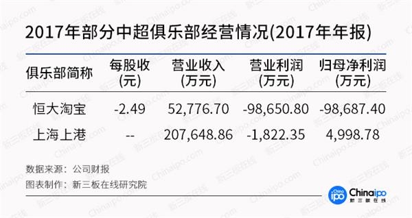 除了恒大淘宝外,A股市场上的中超概念股中,上港集团和绿地控股也在年报中提到了下属俱乐部的部分财务状况。其中,上海申花的账面价值在2017年减少了4,327.80万元,而上海上港虽然归母净利润达到了近5000万元,但是营业利润仍然亏损了将近2000万元,经营情况难言乐观。