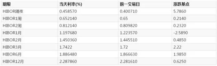 5月7日,3个月Hibor上升2个基点至1.7422%,续刷2008年以来新高。