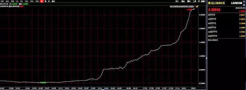“以6个月期美元Libor为例,它现在已经涨到了2.52%,而美联储3月仅加息25个基点,最高达到1.75%的水平。”业内人士惊呼,真正决定企业融资成本的市场利率已经领先于政策利率,出现了惊人的增长。