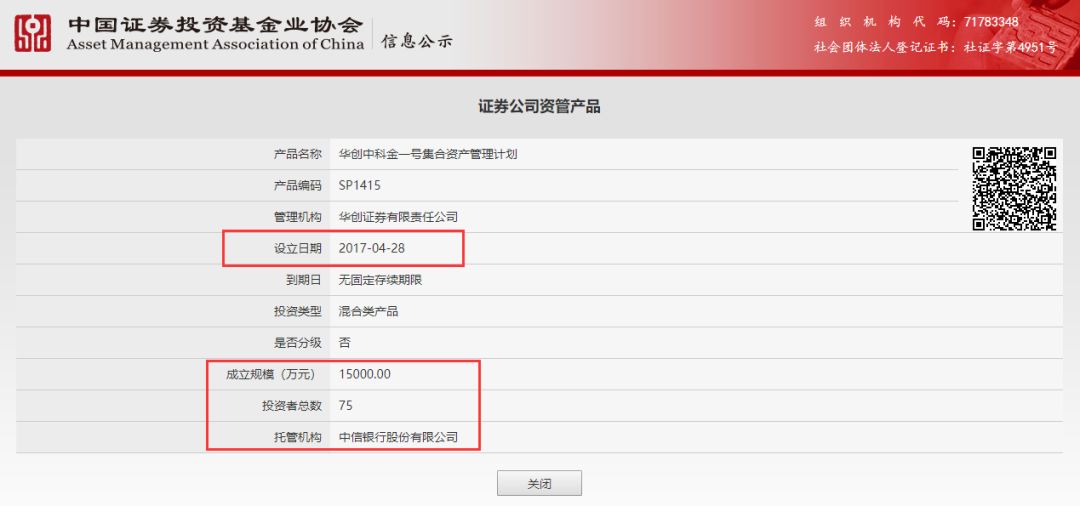券商中国记者了解到,由华创证券管理的该只资管产品设立日期是2017年4月28日,产品期限是12个月,总规模约为1.5亿元,共有75名投资者。中信银行是托管机构。华创证券上海分公司是发行机构,最终资金用途是“用于补充中科金控流动资金,中科金控用于归还关联方借款。”
