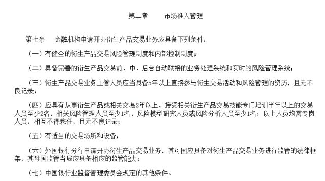根据《银行业金融机构衍生产品交易业务管理办法》第七条的规定——