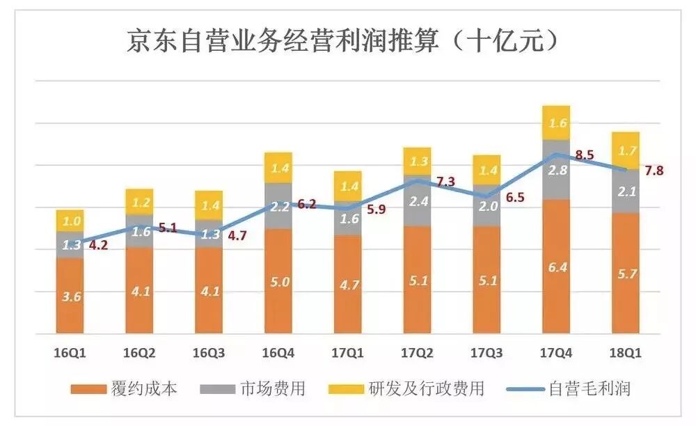 即使2018年Q1毛利润率按10.5%计算,自营业务也才刚刚收支平衡。