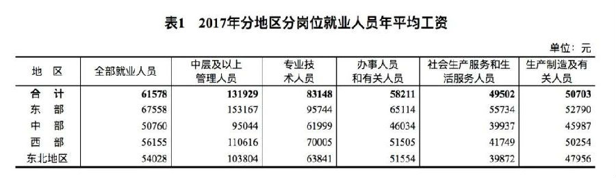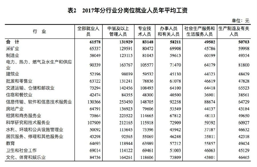 这两天,统计局发布了2017年规模以上企业就业人员分岗位年平均工资情况。