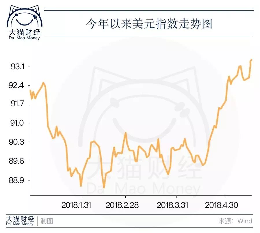 自4月中旬以来,美元指数显著走高,已从89.4上涨至目前的93附近,涨幅接近4%。