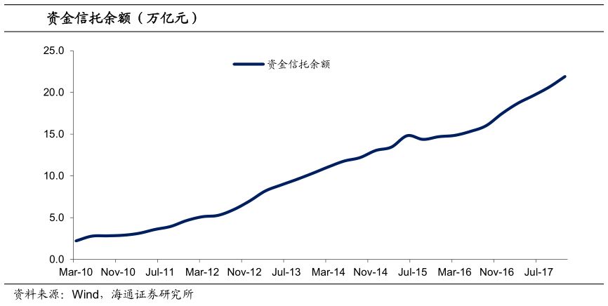 但是本次资管新规出台以后,资金信托规模可能如券商资管和基金专户一样出现负增长。