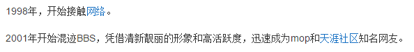 根据百度上的资料,距离wawa2001年正式出道,迅速成为猫扑和天涯社区知名博主,已经过去了17年,凉得太晚了。