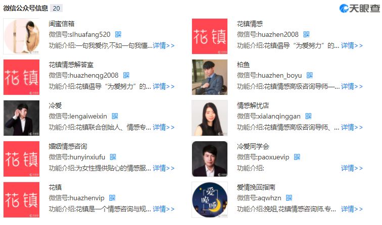 也是在2014年,同样是门萨俱乐部会员的肖某兴创办了情感咨询与培训机构——花镇教育咨询有限公司,邀请wawa成为了合伙人,并一步步发展出庞大的微信矩阵。