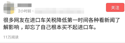 有网友说,听到这个消息,感觉自己“有点膨胀”,居然开始操心到时候买辆奔驰能省多少钱,忘了自己其实买不起进口车……