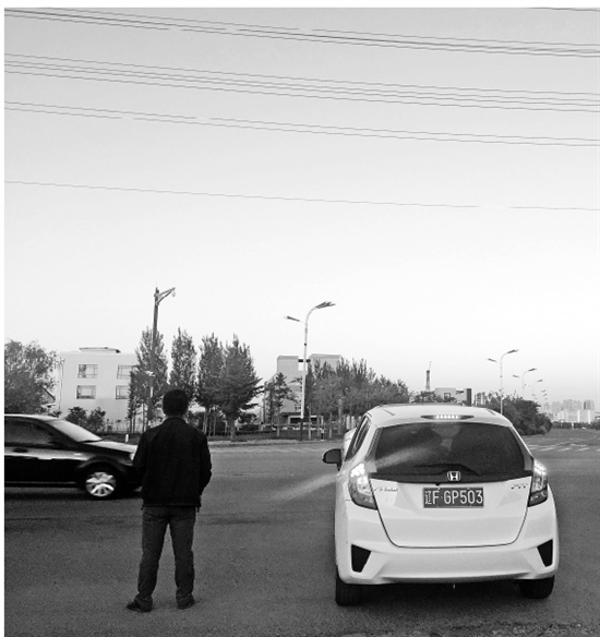 离开前,他在高楼林立的新区路边,吃完了一份快餐。这里要找一家饭馆很难,很多地方还没有安装路灯。