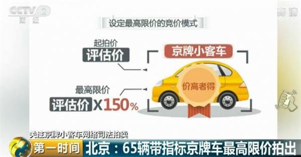 目前,京牌小客车司法处置采用 “设定最高限价的竞价模式 ”,也就是以车辆评估价为起拍价,最高限价为车辆评估价的 150%,在限价范围内出价最高者得。多人报出最高限价时,不分报价先后,累计摇号次数最多的竞买人最终获得。如果多名竞买人累计摇号次数相同,则由在北京市小客车指标调控管理信息系统注册时间最早的竞买人获得。