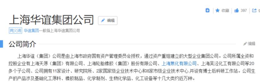 上海华谊(集团)公司是由上海市政府国有资产管理委员会授权,通过资产重组建立的大型企业集团公司。公司所属全资和控股企业有上海天原(集团)有限公司、上海轮胎橡胶(集团)股份有限公司、上海焦化有限公司、上海吴泾化工有限公司等20多个子公司、公司拥有11家设计、研究院所、2家国家级企业技术中心和8家市级企业技术中心,并设有博士后科研工作站。公司生产的产品涉及基础化工原料、橡胶制品、化学制剂、生物化学品、化工设备等十几大类约近万种。