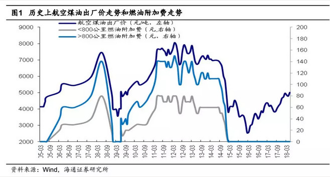 据太平洋证券在此前的研报中指出,2015年后,国际油价步入下行区间,燃油附加费随之也停止征收。与此同时的近几年,航空公司净利润稳步增长。随着近期油价涨幅,2018年5月底突破国内燃油附加费起征点每吨5000元的价格线。按照之前文件精神,国内航司国内航线的燃油附加费已经达到征收条件。