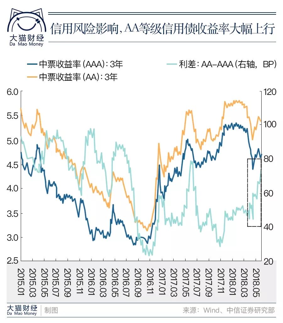 本来市场买方已经不能和不敢像过去那样加杠杆闭着眼睛买买买,低等级债券的违约事件多了,市场就更谨慎了。这直接导致的后果是: