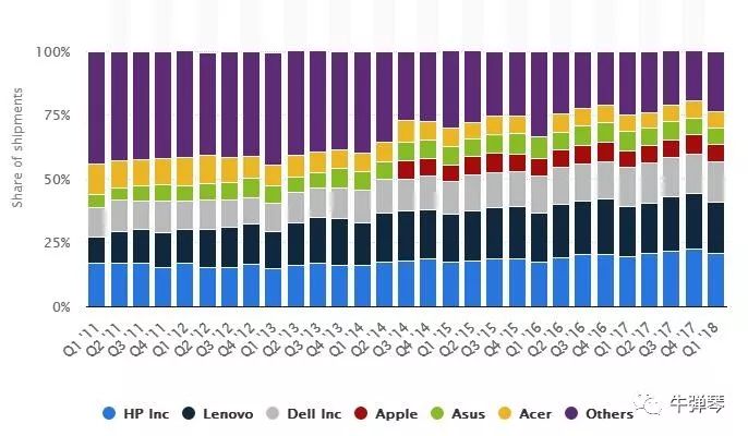 各品牌在中国笔记本市场份额