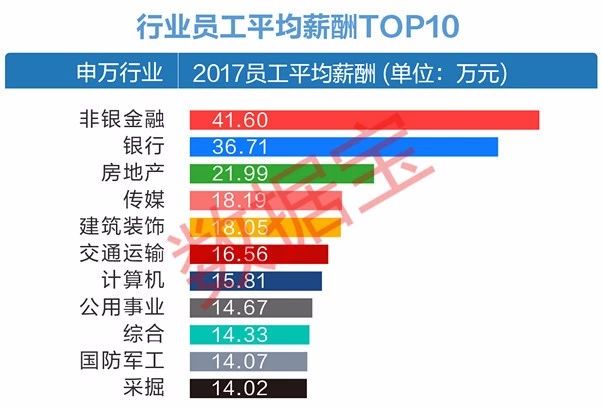 从国家统计局公布的2017年城镇单位就业人员年平均工资数据来看,新兴行业仍然优势显著。数据显示,在2017年,年平均工资最高的三个行业分别是信息传输、软件和信息技术服务业13.3万元,金融业12.3万元,科学研究和技术服务业10.8万元,分别为全国平均水平的1.79倍、1.65倍和1.45倍。