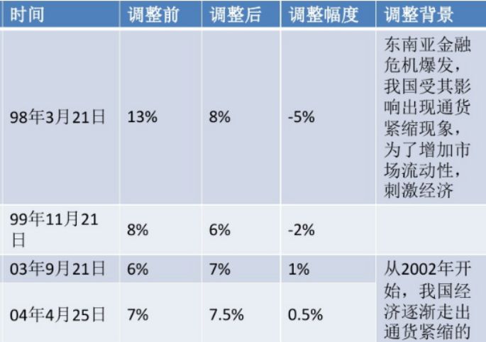 这期间,央行也开始不断提高法定存款准备金率,从2003年9月的6%提高到7%,到了金融危机之前达到了18%。随后,金融危机的出现,陆续下调了法定存款准备金率。