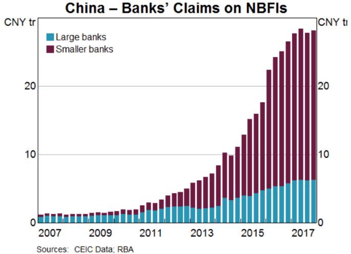 从上述图片来看,2013年之后,中小银行对于非银部门的债权比重快速上涨,目前比重已经达到了75%左右。这些中小银行是央行MPA考核的重点银行,也是需要加大补充资本金的重点领域。