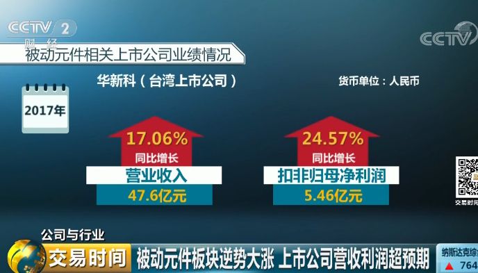 台湾华新科2017年营业收入47.6亿元,同比增长17.06%;扣非归母净利润5.46亿元,同比增长24.57%。
