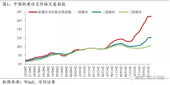 随着人口不断涌入城市,房地产市场面临旺盛的需求,城市房地产价格开始普遍上升。观察中国不同城市之间的房地产价格变化,无论是基于国家统计局公布的新建住宅价格指数,还是基于百城住宅价格指数,都可以将房地产市场划分为两个阶段。