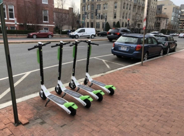 Lime投放在美国首都华盛顿特区街边的滑板车