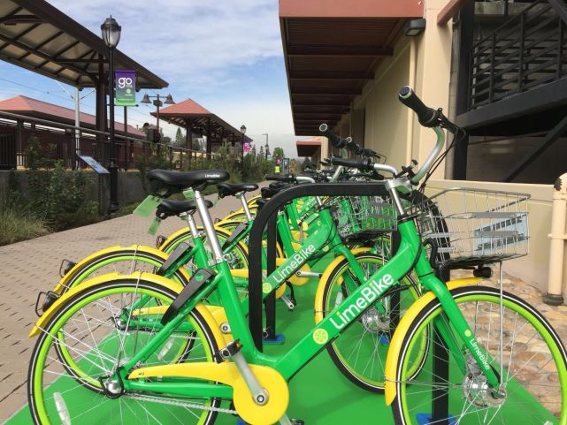 2018年3月,Lime投放在美国旧金山街边的自行车