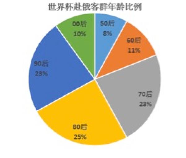 从年龄分布来看,70、80后中生代是看球主力,90后00后年轻一族也占到三分之一左右。相比平时赴俄旅游团队50%以上是大妈大爷,世界杯期间赴俄主力几乎大换血。