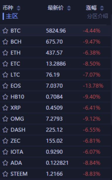 虚拟货币全面下跌