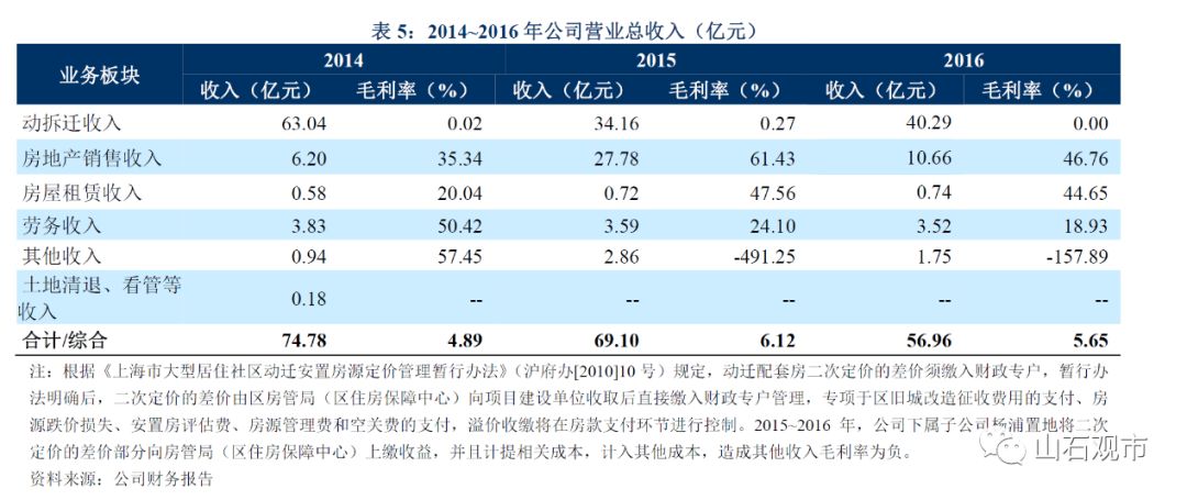 从城投的报表和评级报告中我们可以看到对业务和资产的明确描述,公司主要负责各项市政工程的前期动拆迁业务,业务资金一部分来自于公司向银行进行贷款融资,另外一部分来于杨浦区市政项目专项款,相应资金进入专项账户,按照工程进度支付动拆迁工程款。大市政项目的动迁成本计入公司的在建工程。动迁收入和成本是按工程审计及项目拆平交地来确认,同时按照征收委托协议收取一定劳务费,计入劳务收入。同时,公司还购入房源用于动迁安置,所购房源计入存货。