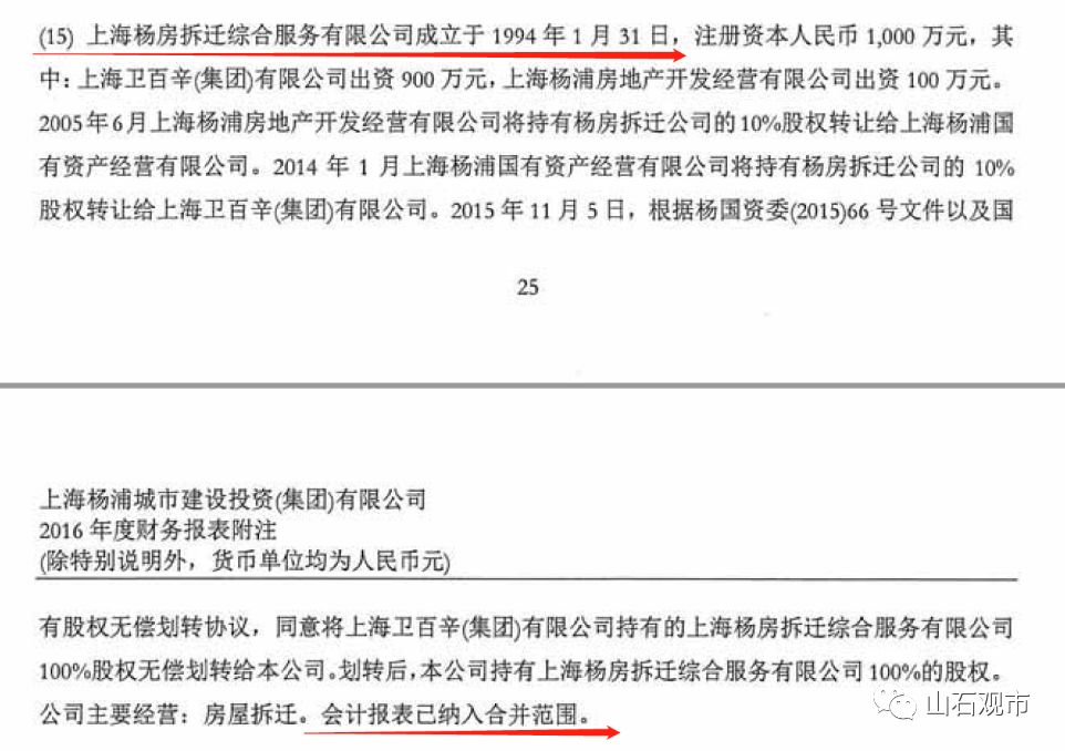 有意思的是,在告居民书中,我们看到这次的拆迁受托机构为上海杨房拆迁综合服务有限公司,这也是一个由杨浦城投100%控股的企业,在年报中也有清晰的展示,是并表企业: