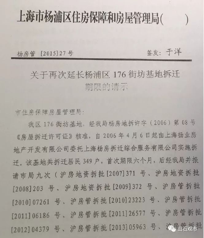 在公开的审计报告中,15年起杨浦城投就已经与176地块没有直接的联系,但从之后的一系列操作中,我们仍然可以看到这个工程背后无形的手。为了让这次移花接木的魔法完美的收场,不可谓不费尽心思。例如,延长了12年有效期的拆迁许可证,延长了14年的房地产开发企业暂定资质证书,伪造居民签字等等。(《房地产开发企业资质管理规定》第六条(五)“《暂定资质证书》有效期1年。房地产开发主管部门可以视企业经营情况延长《暂定资质证书》有效期,但延长期限不得超过2年。自领取《暂定资质证书》之日起1年内无开发项目的,《暂定资质证书》有效期不得延长。”)