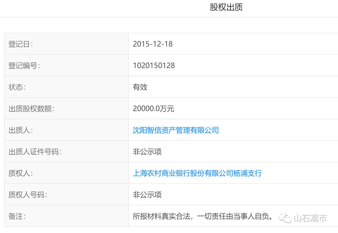 由于之前提到的原因,在杨浦城投的合并报表中已经无法看到这个项目,项目的具体支出和来源也就无从考证了。但是在扬业房地产的信息中,我们看到2015年百利荣通过沈阳智信增资成为扬业的大股东之后,又将其持有的扬业房地产有限公司的股权进行了质押,质权人为上海农商行杨浦支行。而扬业地产作为一个项目公司,股权更不可流通,除了资本金以外,还有什么资产呢?这样的股权质押融资,应该会让很多上市公司的股东都无比眼红吧。相比这两年融资如履薄冰的大型地产开发企业,这个名不见经传的地产商无论从操盘还是融资上不得不让人刮目相看。