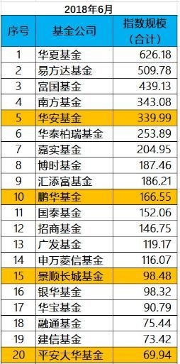 整体来看,根据最新的数据,要想进入被动投资前十大公司,起步门槛是166亿。从总规模来说,排名第一的华夏基金,最新指数基金规模626亿元,其次分别是易方达、富国、南方、华安。