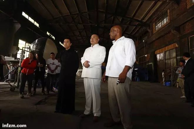 ▲2015年5月16日,上海,《叶问3》片场探班。迈克·泰森(MikeTyson)、甄子丹、施建祥(中)。(视觉中国/图)