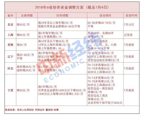 梳理发现,目前仅有北京、上海、青海、辽宁、河北、宁夏6个省份宣布调整养老金方案。