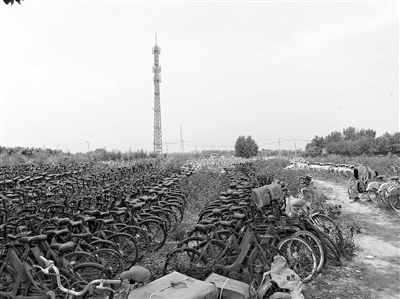 附近一家自行车厂的老板提起农田里的几万辆共享单车连连叹气,“那些车真是太可惜了,以我的经验来看,绿色的那些成本价最低六七百元,蓝色的则至少上千元。太可惜了,都是好的车。”
