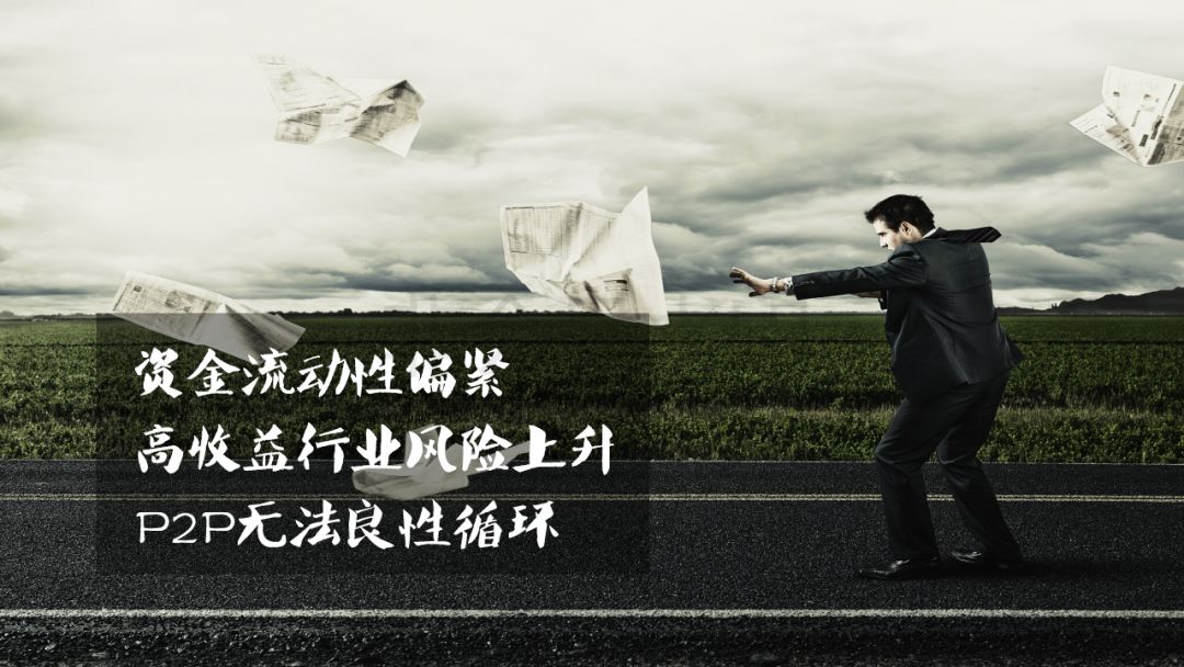 金融行业发展明显具有经济周期性,因此与经济形势关系紧密。所以,今年上半年P2P行业形势,与当前的中国经济形势有不小的关系,一方面资金流动性偏紧,另一方面房地产等收益高的行业风险上升,回报率下降,导致了P2P本身无法良性循环下去。