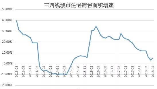 其次,三四线住房新开工和施工面积都在稳步攀升。今年1-5月,三四线城市施工面积增速为3.6%,远远高于全国房屋施工面积增速(2.5%)。这或许预示着下半年或明年,伴随着需求端持续回落趋势,三四线城市住房库存将重回上升通道中。