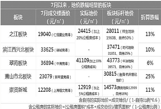 7月以来,“推地潮”开启,无论是主城区、萧山还是余杭,众多热门板块的地价相比之前,均呈现出不同程度的下跌。