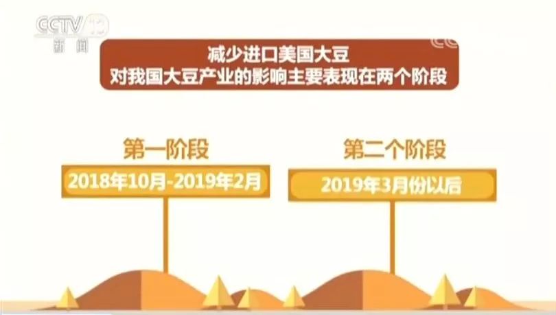 专家分析说,减少进口美国大豆,对我国大豆产业的影响主要表现在两个阶段。第一阶段是今年10月到明年2月,也就是美国大豆主要出口期。国家粮油信息中心高级经济师王辽卫介绍说:“我国主要进口巴西大豆。后期如果巴西大豆供应不足,可能需要进口少量高价美国大豆,进口成本有走高的可能。”