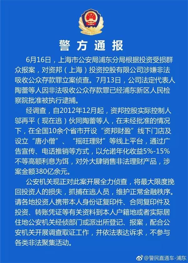 公安机关表示,现正对此案开展全力侦查,将最大限度挽回投资人的损失,抓捕在逃人员,维护正常金融秩序。请各地投资人携带本人身份证复印件、合同复印件及投资、转账凭证等有关资料到本人户籍地或者实际居住地公安机关经侦部门或派出所登记、报案,配合公安机关开展调查取证工作,并依法表达诉求,不参与各类非法聚集活动。