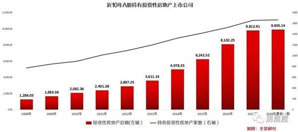 数据显示,截至6月26日,A股3582家上市公司中,共有1656家上市公司持有投资性房地产,占比46.23%,合计持有市值9905亿元,较2016年增长超过两成。