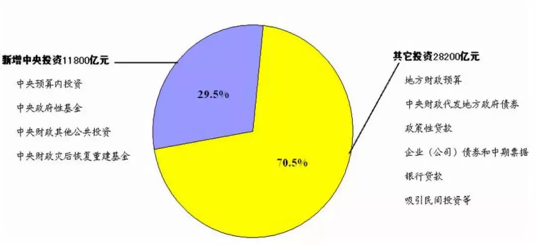 2008年官方表述为4万亿,那么其资金来源大概如下: