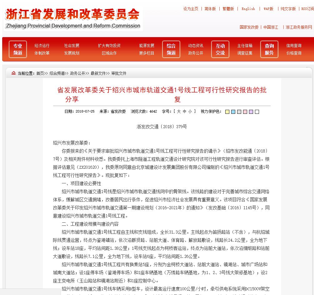 2018年7月23日召开的国常会,而在2018年7月25日,绍兴轨道交通1号线就获批。由此可以看出国家在交通基础设施的审批效率上加快了脚步。