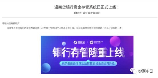 2017年4月,温商贷成功上线贵州银行,却又遇到贵州银行今年决定退出银行存管的业务。连续换了5家银行后一切才就此落幕。