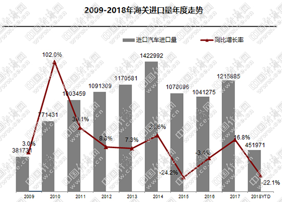 此外,平行进口车也未能幸免于难。数据显示,6月平行进口汽车共1121辆,同比下降92.2%;1-6月,平行进口车共5.95万辆,同比下降24.0%,占进口总量的13.1%,相比2017全年的14.2%下降了1.1个百分点。
